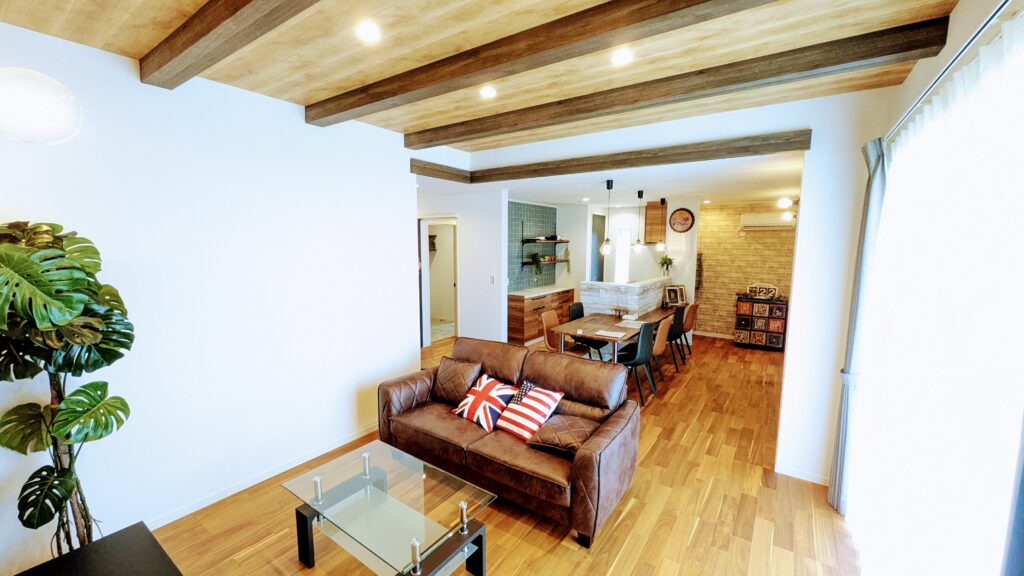 いつもの毎日が特別になる木の質感を活かした外観と、玄関からリビングまで続くフラットデッキが目印のアメリカンスタイルの平屋住宅です。