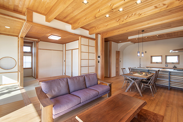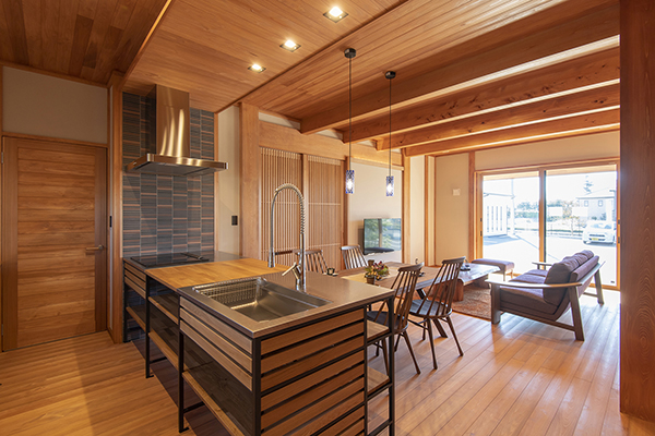 無垢フローリングや一枚板のカウンター、調湿性に優れた木質パネルなど、手に触れたときの感触や空気のやわらかさまで感じられる設えを厳選。素材そのものがつくり出す居心地の良さを、展示場で存分にお試しください。
