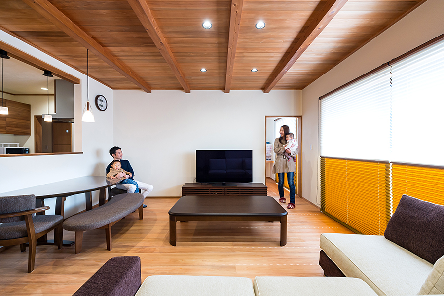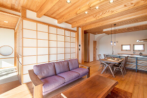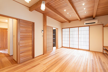 構造には、日本の伝統的な建築技術である「木造軸組工法」を採用しています。柱と梁を組み合わせた軸組構造は、設計の自由度が高く、お客様の理想の間取りを実現できます。