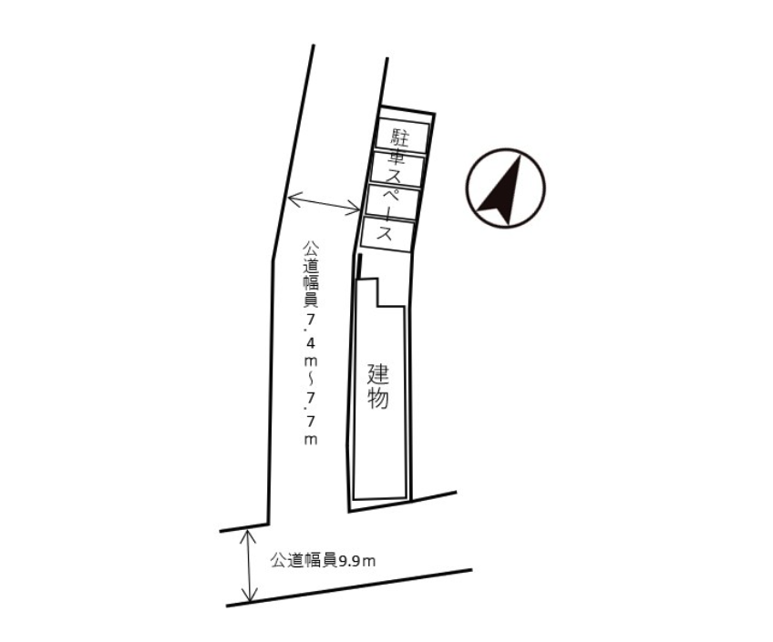 接道/南側公道幅員9.9m、西側公道幅員7.4m~7.7mその他概要・特記事項 上下水道引き込み要