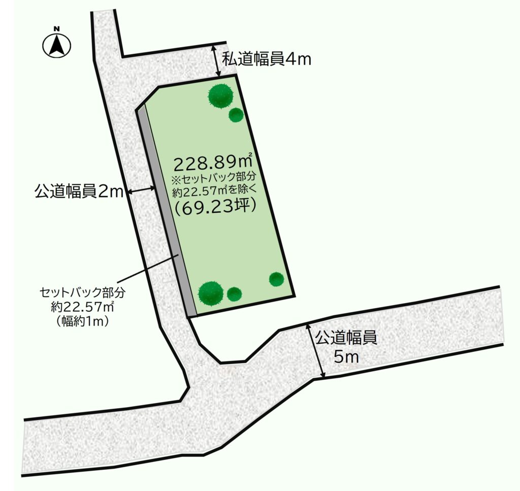 228.89㎡(セットバック部分面積約22.57㎡を除く)