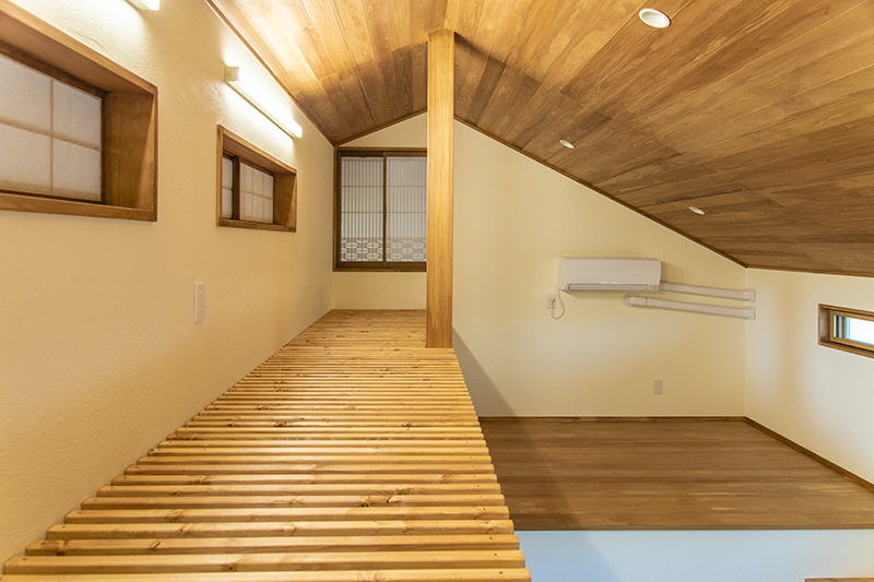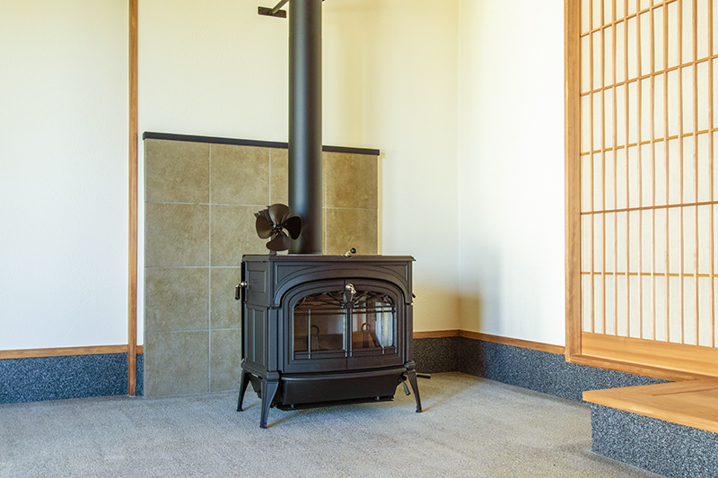 こには、愛犬が寒さを感じないように蒔ストーブが設置され、さらに、天井付近に障子窓をつけることで、他の部屋にまで熱が循環するように工夫が凝らされています。