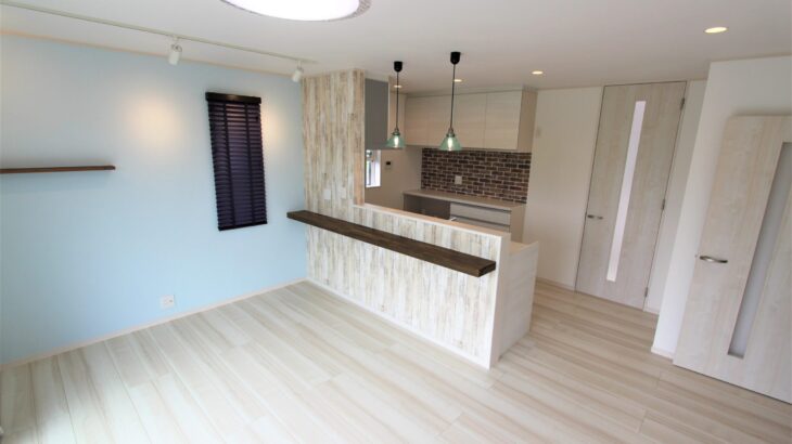 ナチュラルカラーを基調にした開放的なリビング。アメリカンテイストにこだわった内装…