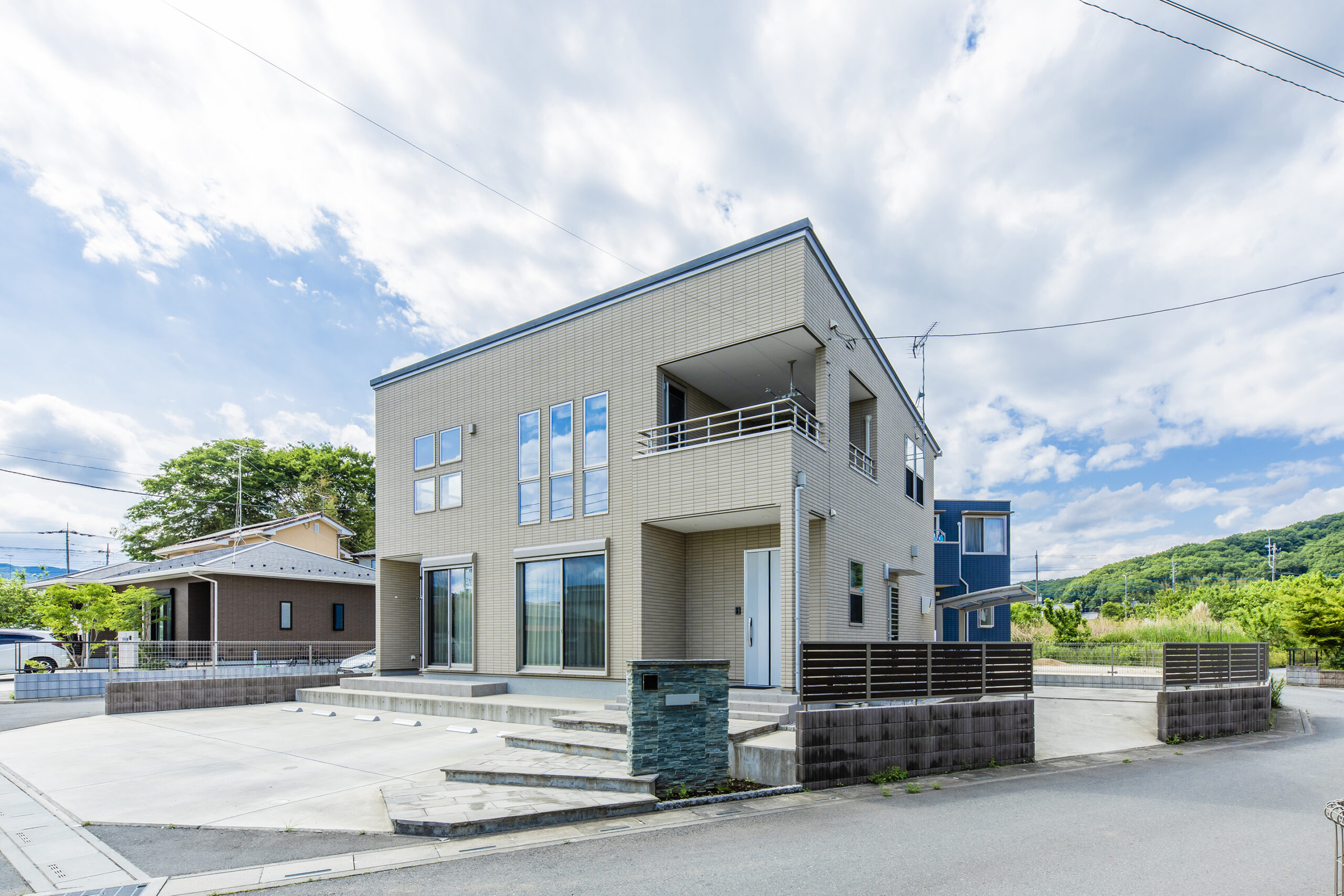 シンプルで飽きのこない外観と調和を感じる整備された敷地内です