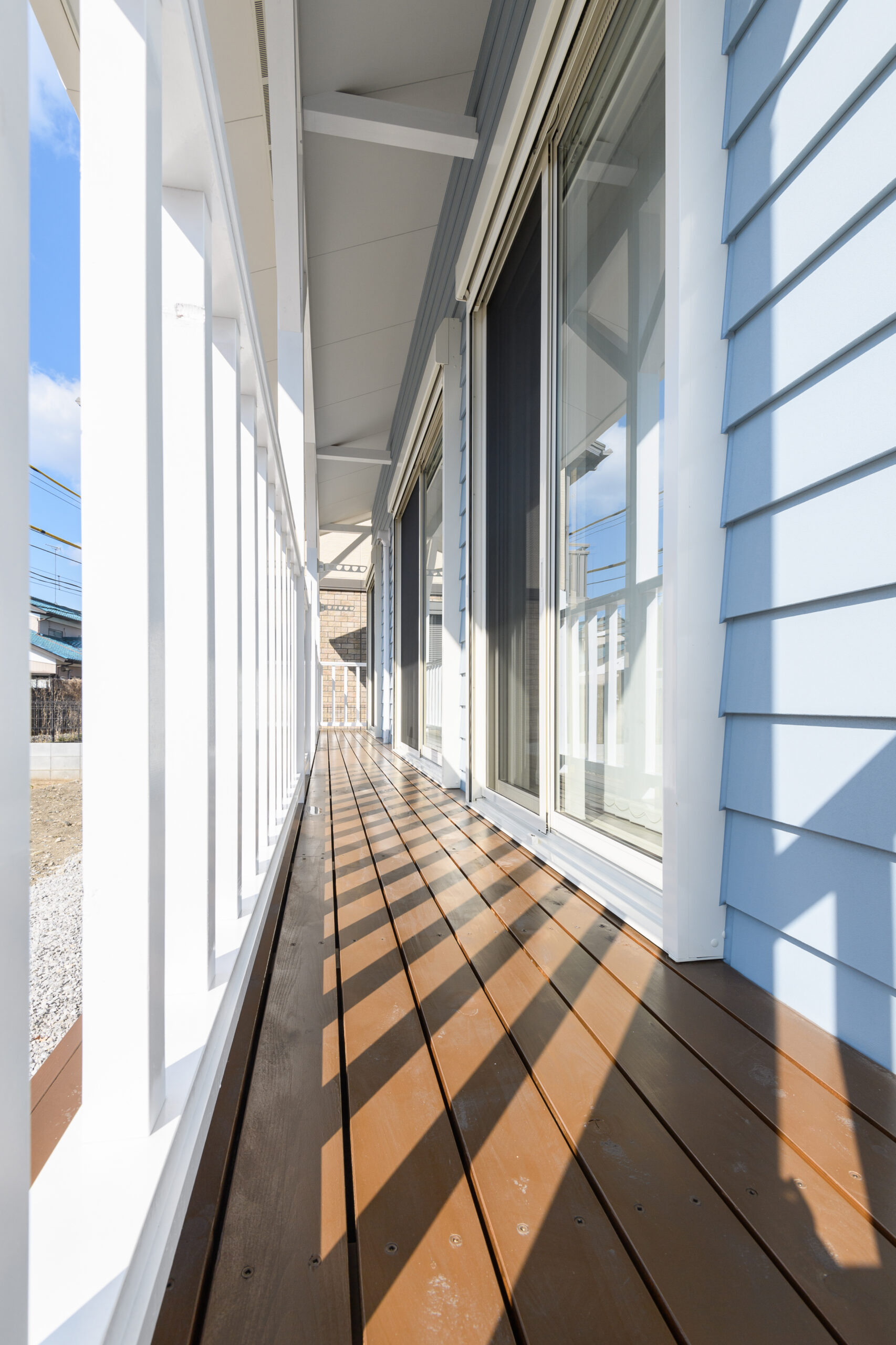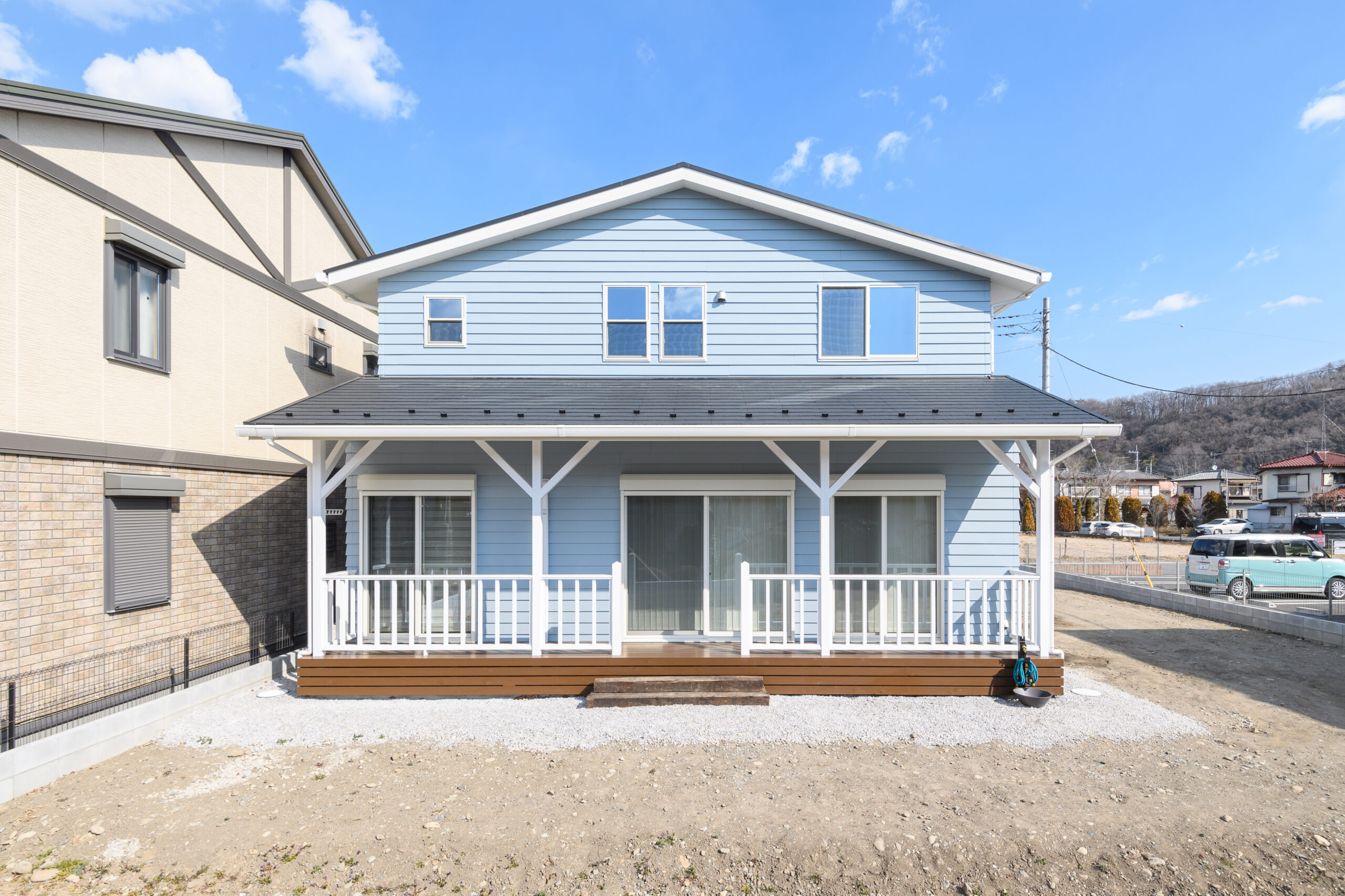 ミントブルーのさわやかな外観カラーは緑あふれる周辺の環境と溶け込みつつ、開放的なアメリカンテイストの雰囲気も演出しています。