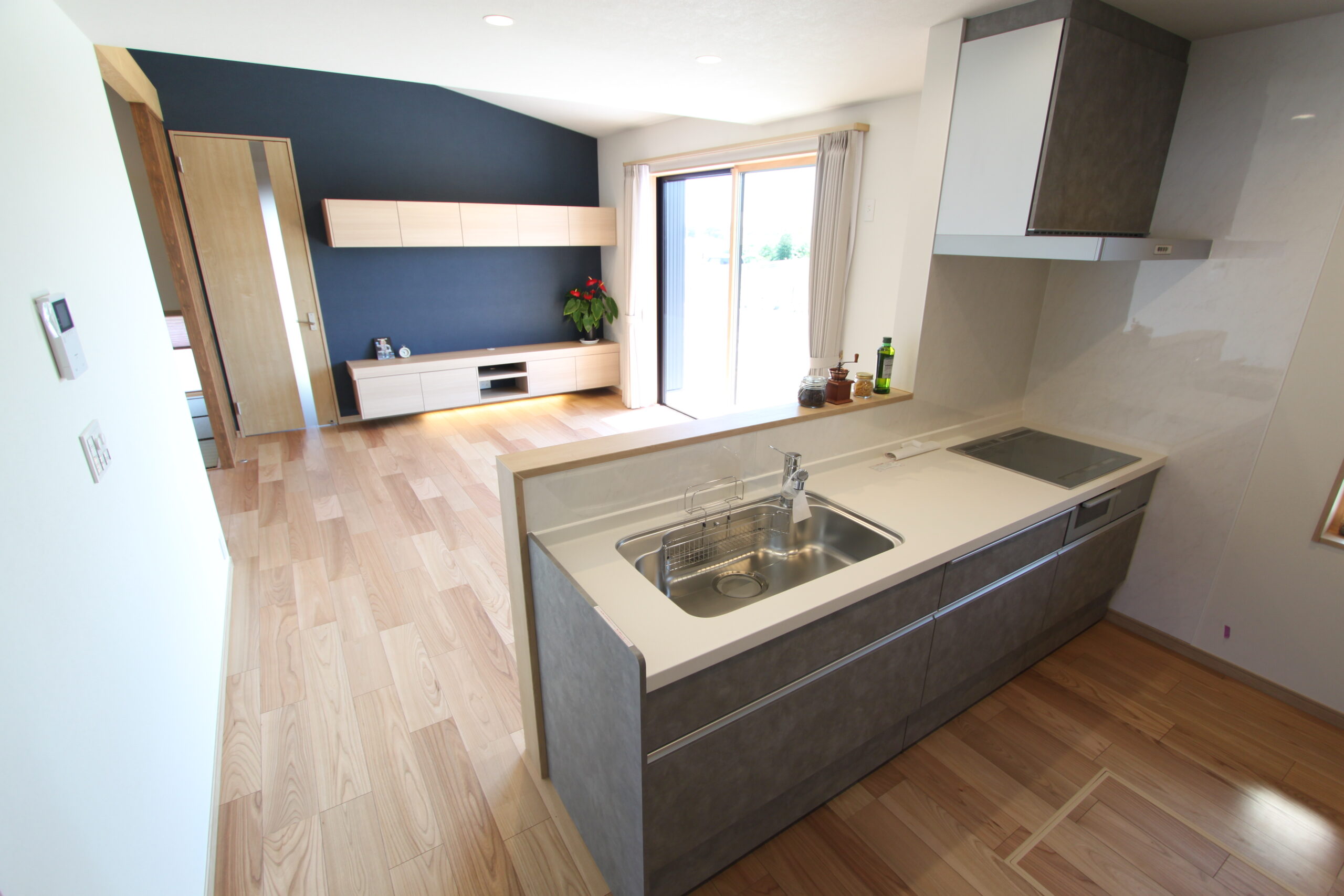 カウンターキッチンでお料理をしながらリビングを見渡せます。