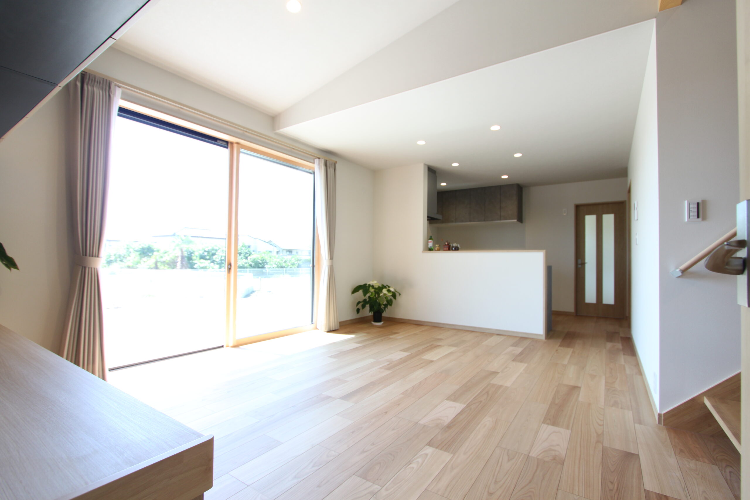 南側の大きな窓から太陽の光が入る明るいリビング空間です。