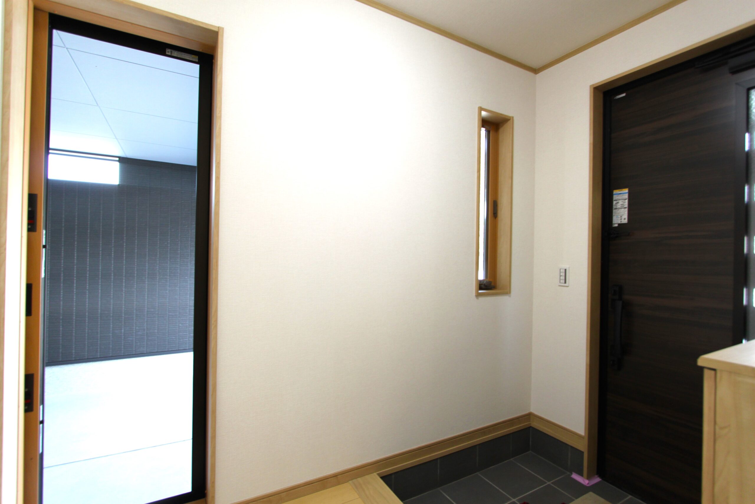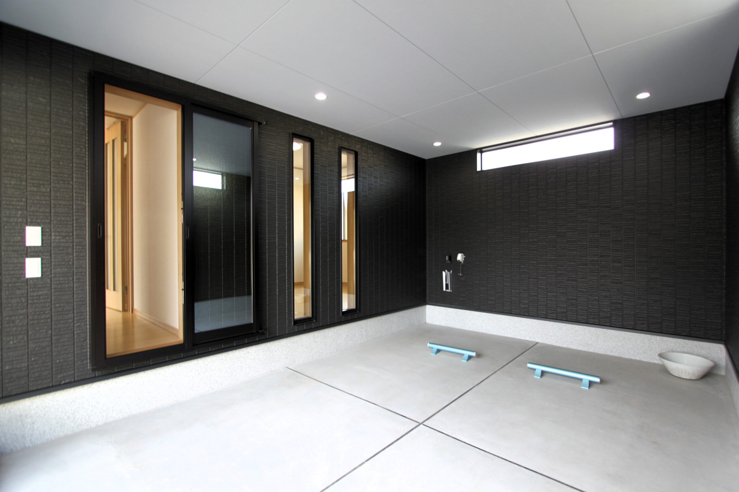 玄関には、直接ガレージへ出られる出入口を設置