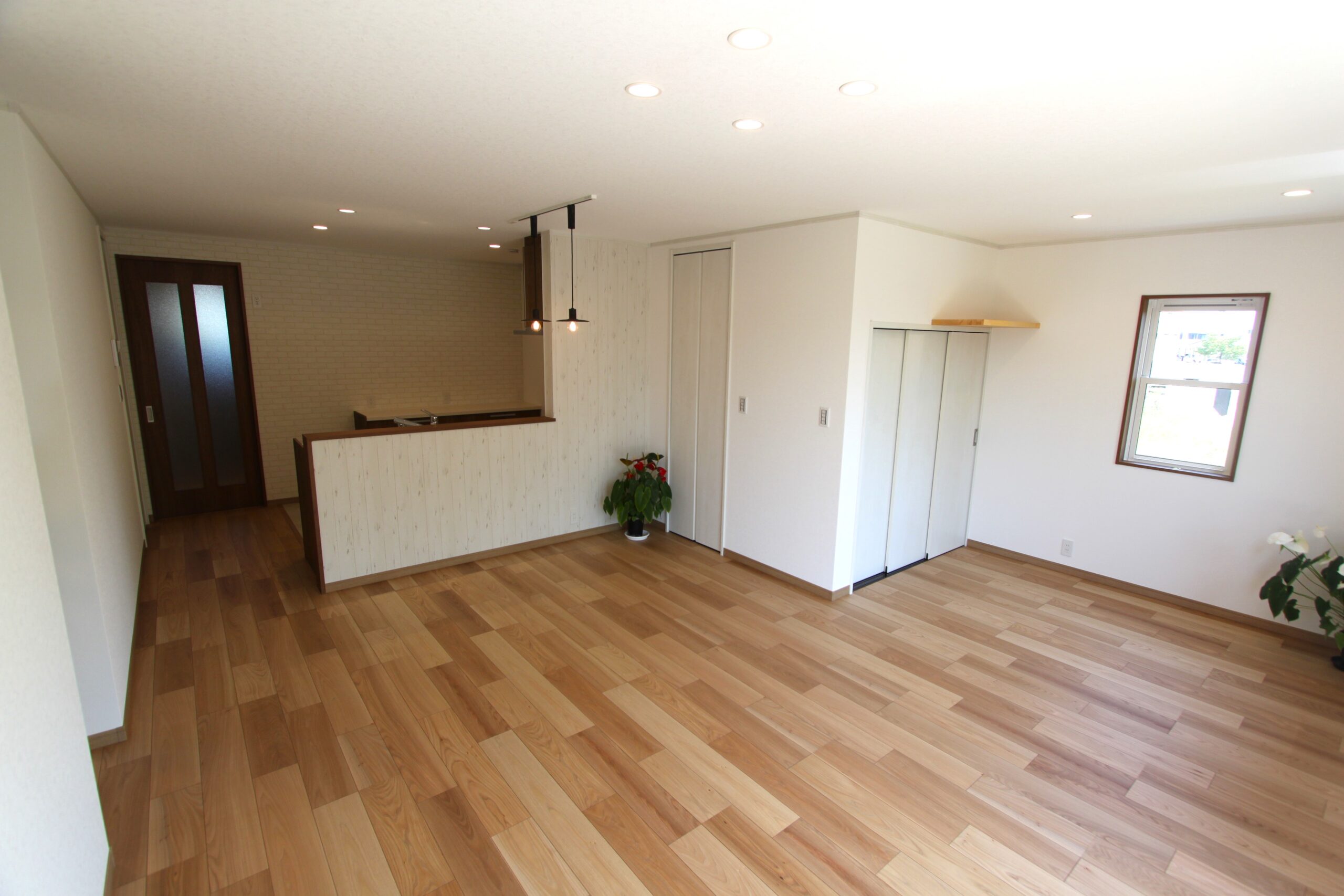 木目調のフローリング材やクロスが自然との調和を演出してくれるLDKが特徴の建物です。