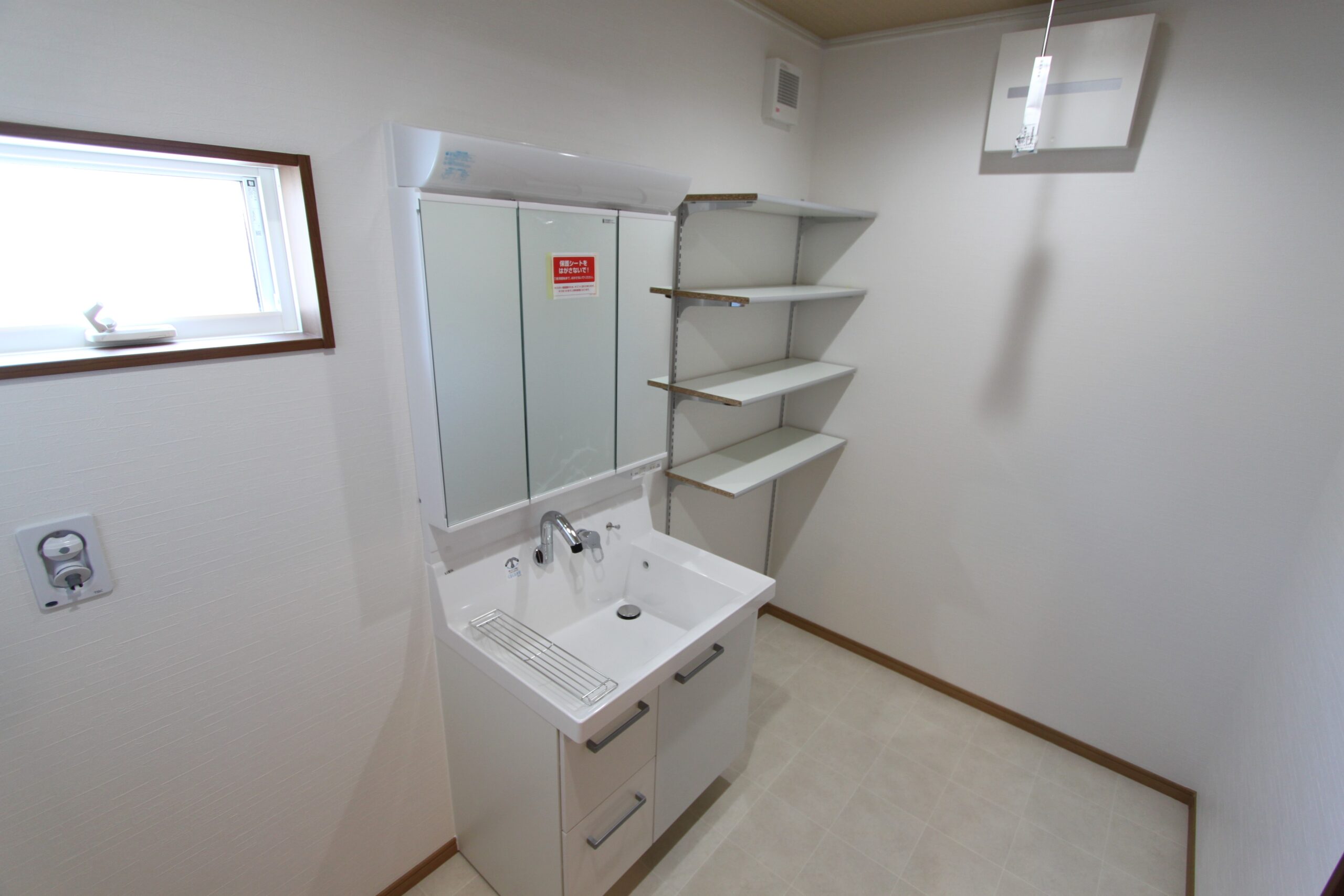 洗面室を広く取り作業スペースや収納スペースが確保できるようになっております