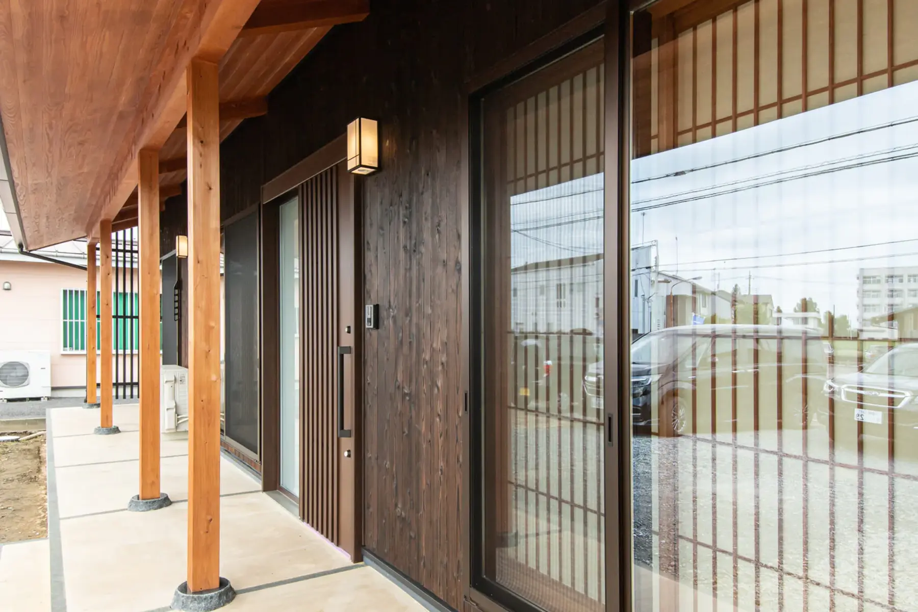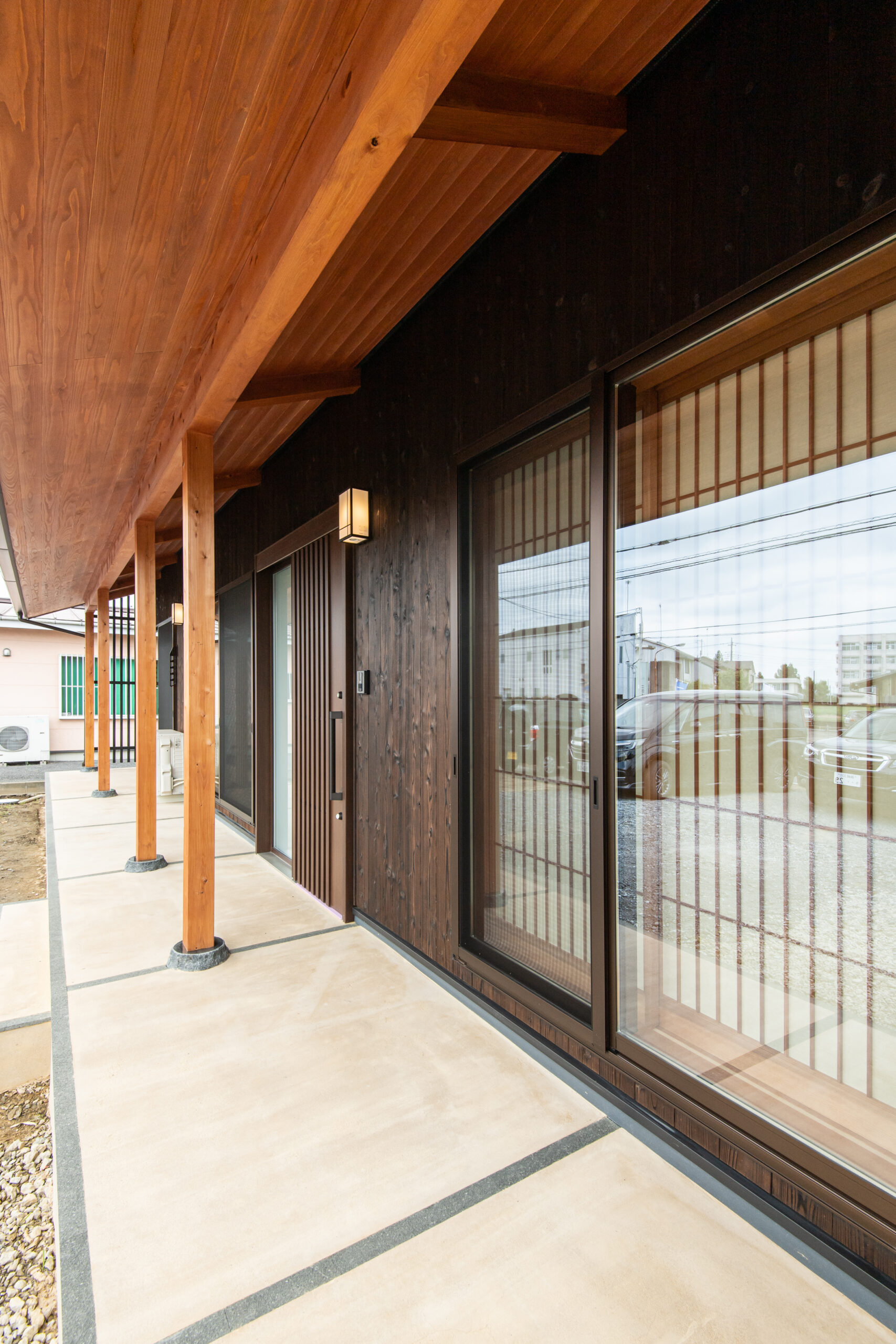 外壁の素材には「焼杉」、柱には「柿渋」の自然塗料を採用。年月を重ねることで、しばらく眺めたくなるような独特の経年変化を楽しめます。