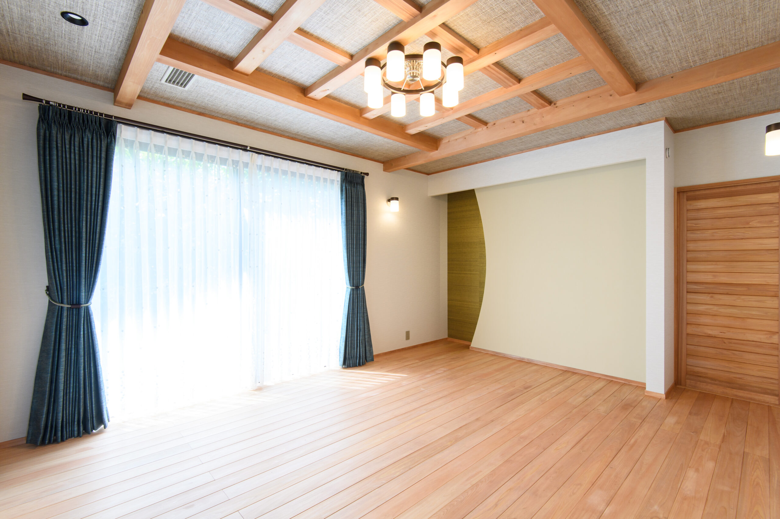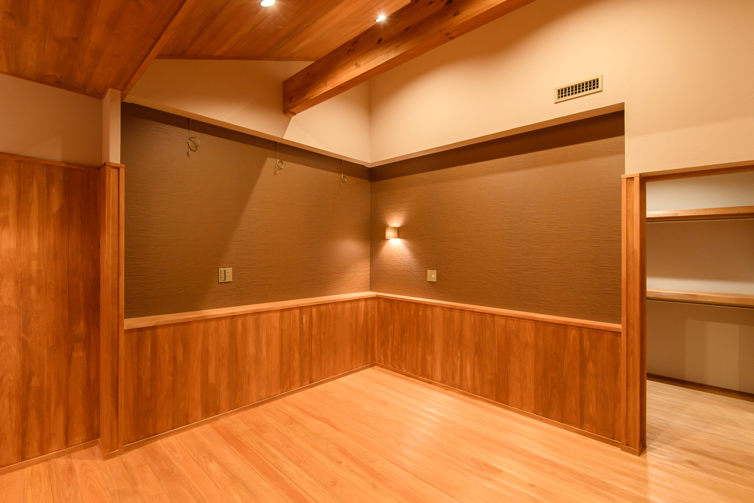 床と天井に無垢のヒノキを採用。ヒノキの香りが日常の疲れを癒し、家族を笑顔にしてくれます