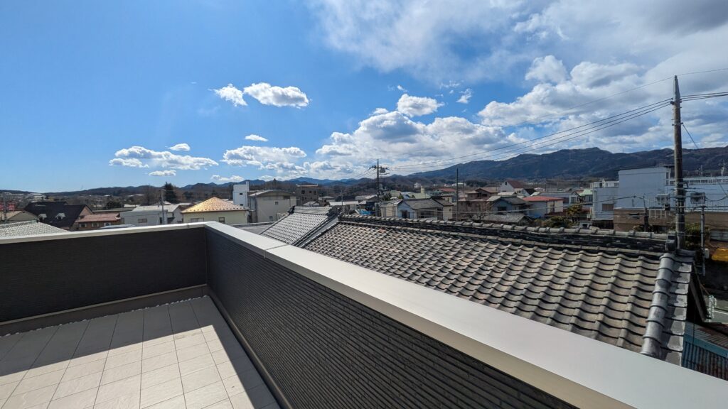 空を独り占めできる贅沢。住宅が多く立ち並ぶエリアに建つこちらの建物は第2のお庭として使える屋上のある住宅です。